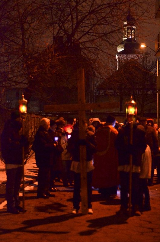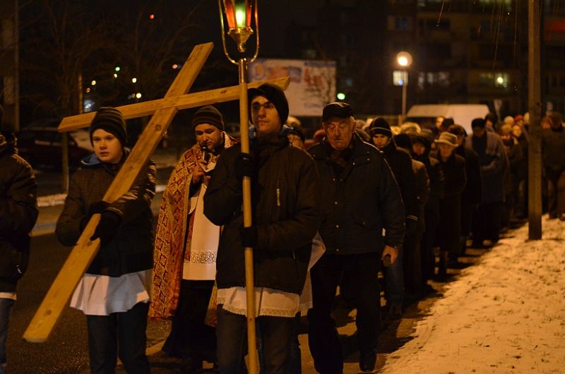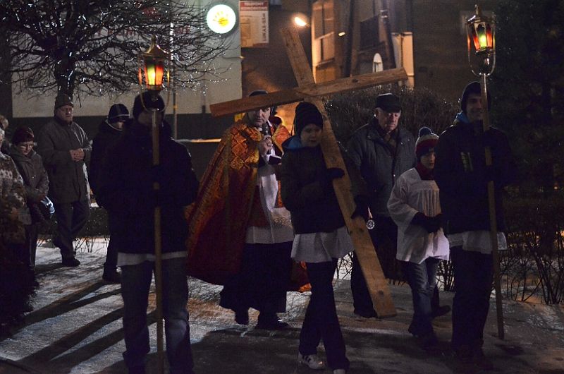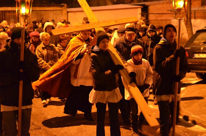 W piątkowy wieczór 8 marca 2013 po Mszy Św. o godz. 18:00 po raz pierwszy uczestniczyliśmy w parafialnej Drodze Krzyżowej której przewodniczył ks. Dominik. Licznie zgromadzeni wierni naszej parafii nieśli zapalone świece. Przy poszczególnych stacjach słuchali rozważań a w czasie drogi śpiewali pieśni wielkopostne.