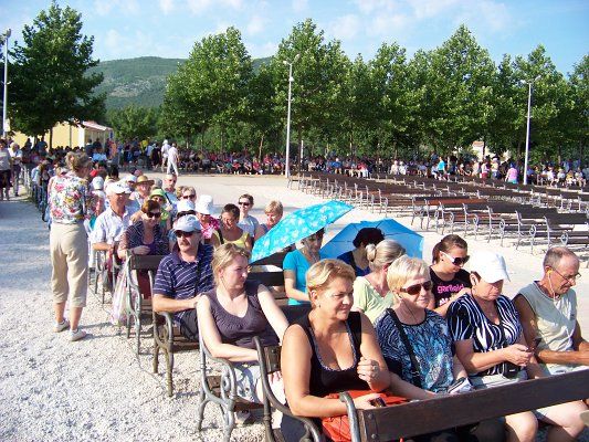 Był to czas łaski dany nam przez Pana Boga. Grupa ok. 30 osób z naszej parafii udała się z Ks. Eugeniuszem z pielgrzymką do Chorwacji i Medugorje. W drodze do celu nawiedziliśmy Sanktuarium Marija Bistrica (Chorwacka Częstochowa), gdzie modliliśmy się przed wizerunkiem Matki Boskiej Bystrzyckiej. Przez 4 dni pobytu w Medugorje uczestniczyliśmy wieczorami w międzynarodowych nabożeństwach, przydały nam się wtedy radyjka ze słuchawkami, gdzie mogliśmy na odpowiednich falach usłyszeć polskie tłumaczenie. Skoro świt byliśmy na Drodze Krzyżowej na Górze Kriżevac. W kolejnym dniu wspólnie weszliśmy na Górę Objawień – Podbrdo, gdzie ukazywała się Matka Boża 6 widzącym z Medugorje, a później spotkaliśmy się z Ivanem, który opowiadał nam o swoim doświadczeniu spotkań z Matką Bożą. Przekazał nam również tekst orędzia jakie ostatnio ofiarowała mu Matka Boża. Nie zabrakło podczas naszej pielgrzymki ciekawych wycieczek min.: do Mostaru i Dubrownika. Udało nam się też odpocząć na Riwierze Makarskiej, gdzie zażywaliśmy słonecznych i morskich kąpieli. W drodze powrotnej nawiedziliśmy Sanktuarium Matki Bożej z Lourdes w Vepric (Chorwackie Lourdes). Następnie po noclegu i zwiedzaniu Splitu czekał nas jeszcze Trogir – piękne średniowieczne miasto, podobne do włoskiej Wenecji. Ostatnim punktem były PLITVICKIE JEZIORA oraz Uroczysta Msza św. na KAHLENBERGU w Wiedniu.